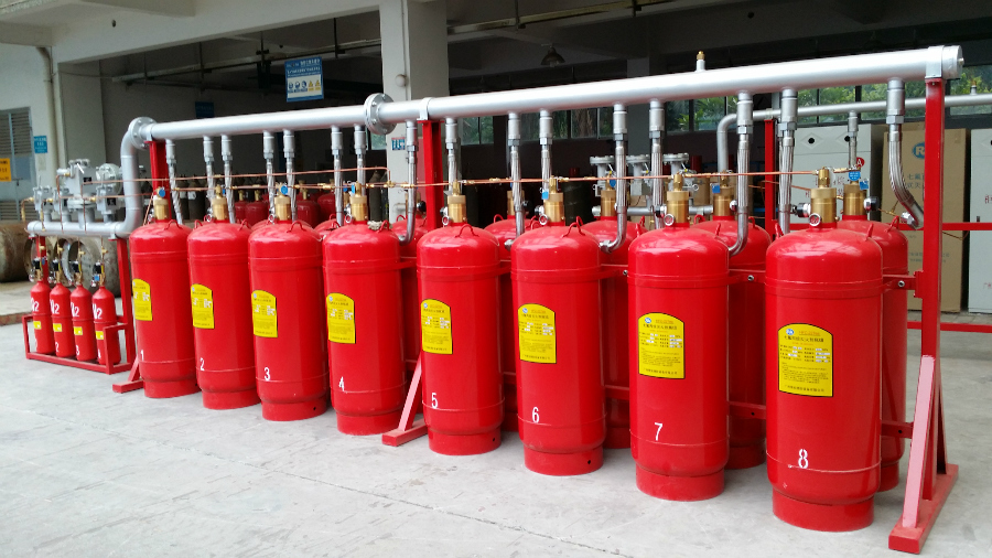 When the system is operating, the fire extinguisher of the fire extinguishing agent cylinder group is charged by the specially designed pressurized gas cylinder group according to the designed pressure, and delivered to the HFC-227ea fire extinguishing system. For high lift and long distance protection area, the solution of external pressure storage HFC-227ea fire extinguishing system is generally adopted, and its conveying distance can reach more than 160M.